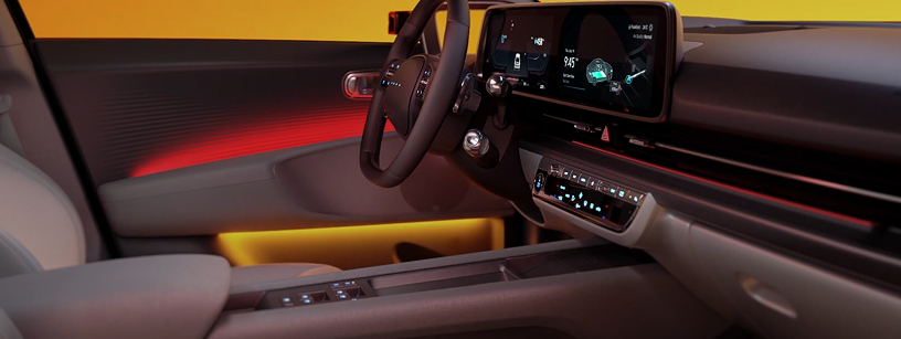 Інтер‘єр З самого початку орієнтований на людину, внутрішній простір IONIQ 6 розроблявся одночасно з зовнішньою формою. Цей інтегрований підхід є нетрадиційним способом проєктування автомобіля, але він дав винятковий результат: салон, що схожий на кокон, дозволяє пасажирам вільно насолоджуватися часом в автомобілі. Внутрішній простір було максимально збільшено, розширивши його спереду та ззаду, що призвело до унікального обтічного силуету та просторого інтер’єру.